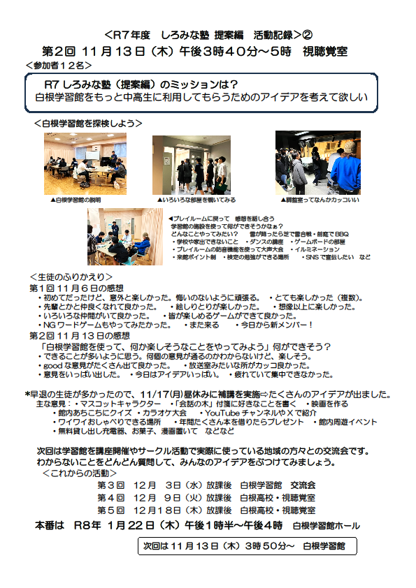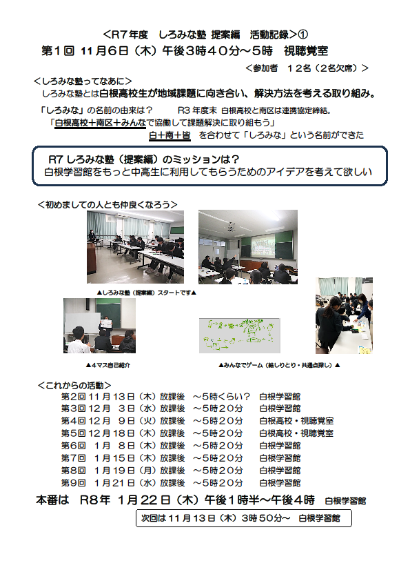 令和7年度しろみな塾 提案編