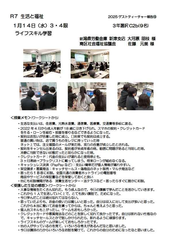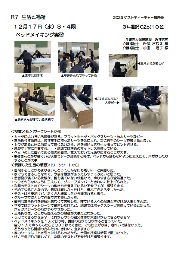 生活と福祉の授業がありました